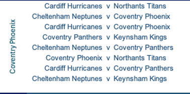 Of the bottom three, Keynsham Kings have the kinder fixtures, however, this is most definitely not an easy weekend for them. Coventry Phoenix have a very tough fixture list and they will need to be on fire to have any chance of getting something from this weekend.