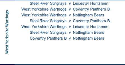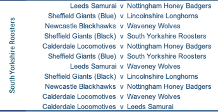 Alongside the top-of-table clash, we also have a 2nd place clash in Sheffield Giants (Blue) vs Lincolnshire Longhorns. Whilst both teams have been handed losses this season, them and arguably, Leeds and the Honey Badgers remain the only credible contenders to the second spot in their respective tables and therefore still have something to play for.