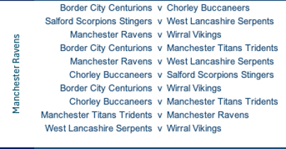 This season’s surprise package the Wirral Vikings are sitting at the top of the table after some good results in the cross-conference weekend. They will have a tough task to maintain this spot though as they face fellow league contenders Border City Centurions, Manchester Ravens and West Lancashire Serpents all on the same day.