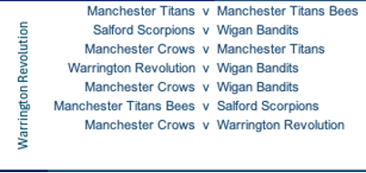 The Titans Bees and Salford Scorpions are quietly going about their business with 3 wins on the board, but they will meet each other this weekend so it will be interesting to see who comes out on top.