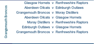 Moray will return to the fixture list this weekend and will be looking to capitalise on an inconsistent Grangemouth Broncos and the Renfrewshire Raptors. The latter game is an opportunity for either team to get a win on the board.
